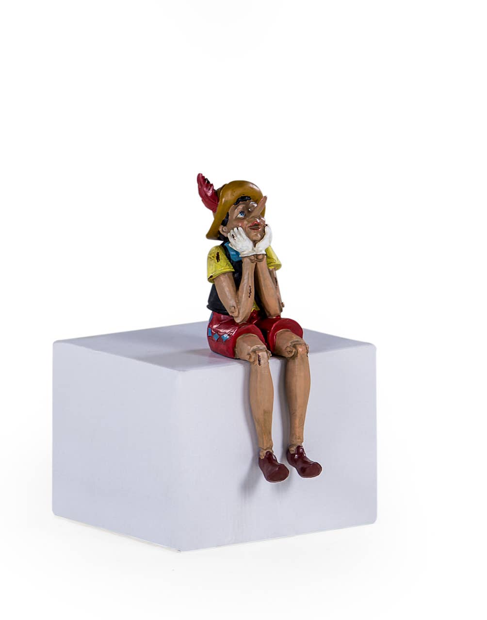 Antiqued Sitting Pinocchio Figure. This fantastic ornament of Pinocchio would look great in any setting from home to office space. Memory lane from childhood, enjoy your memories. Great for Pinocchio collectors or for a gift for anyone who loves him