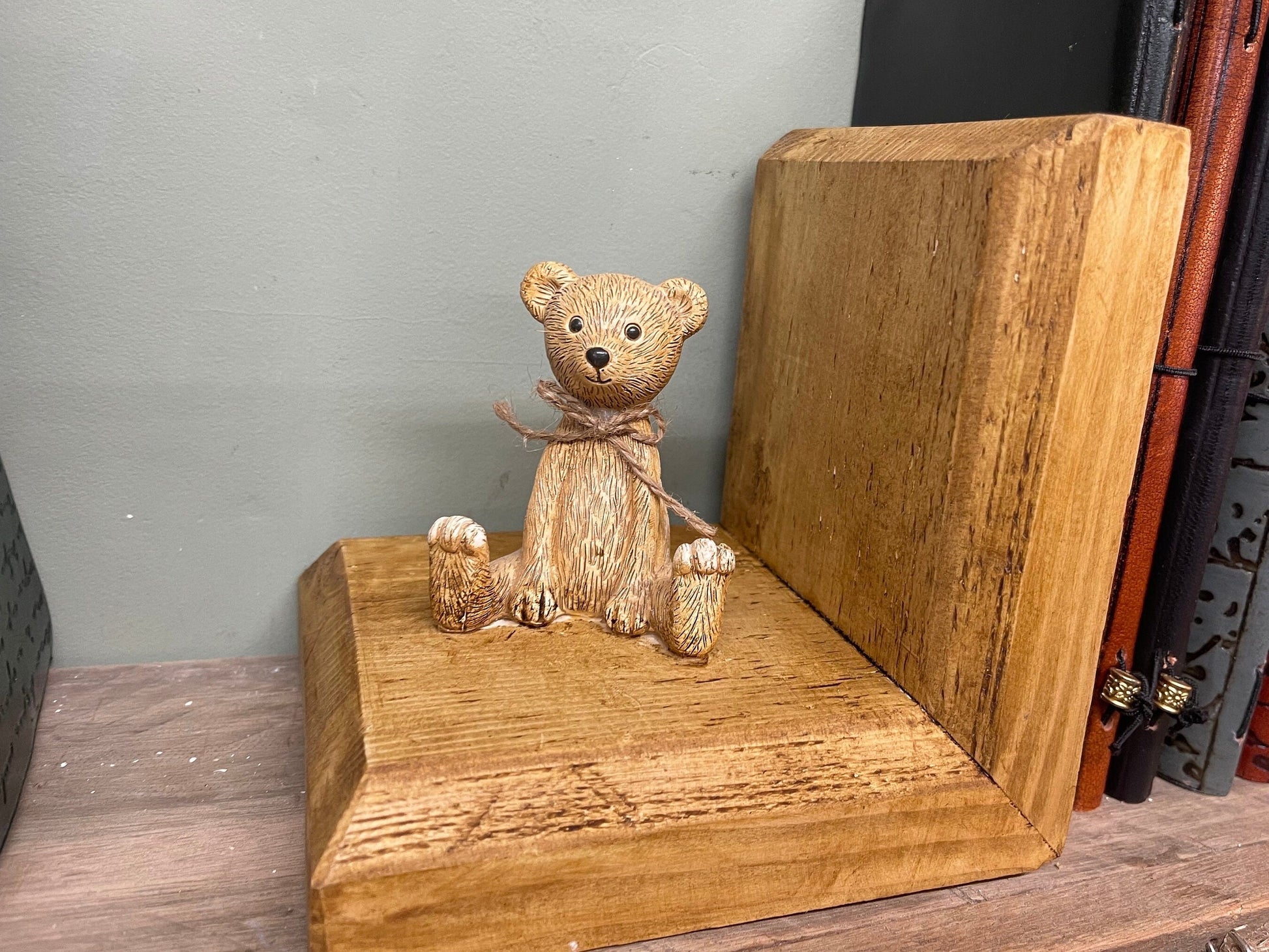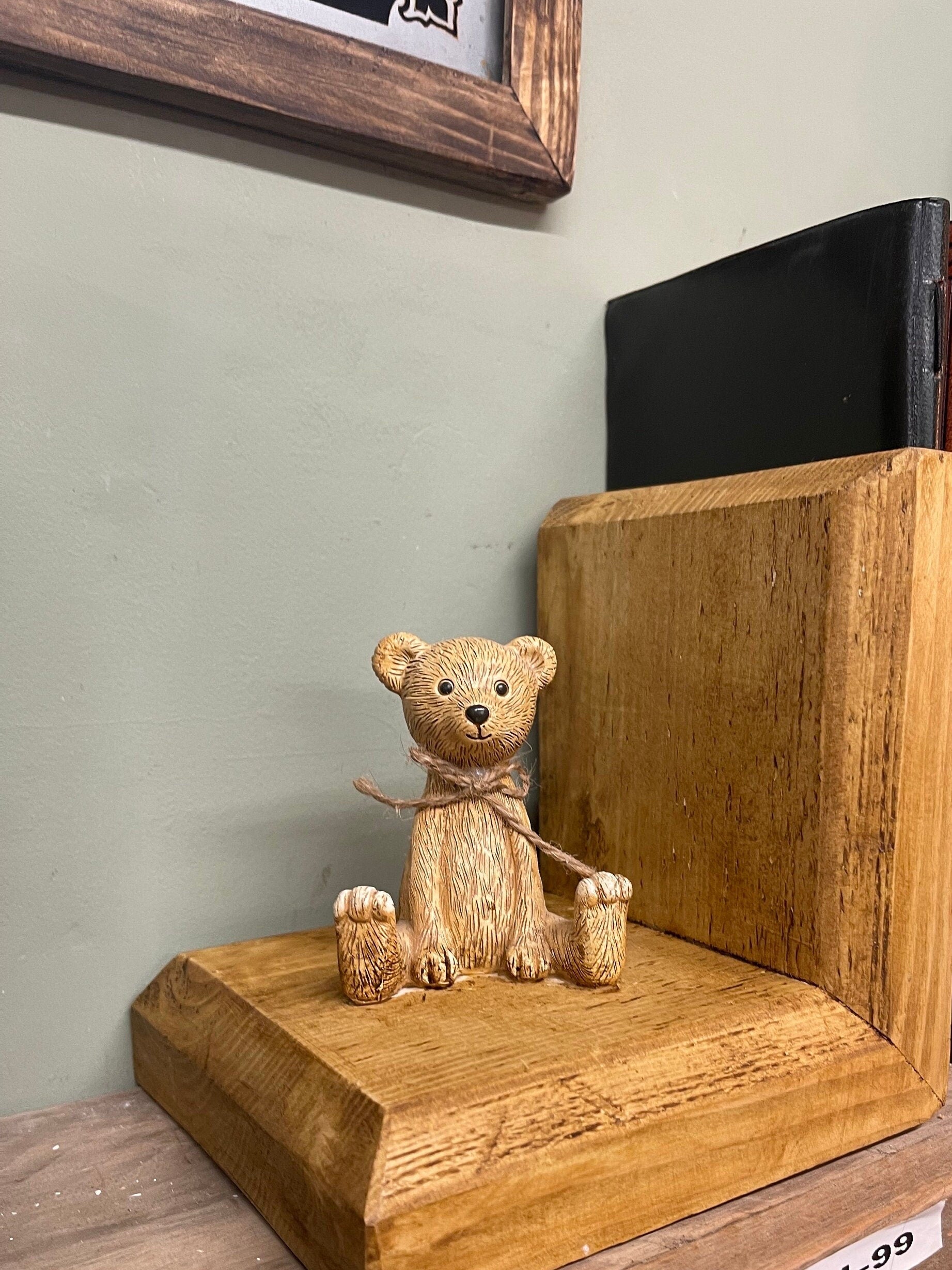 Rustic Bear Wooden BOOKENDS | country home décor sturdy book ORGANISER accessories vintage natural design colour options perfect gift